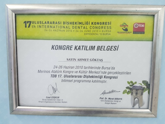 Dt. Ahmet Göktaş , 2008 yılı Ege Üniversitesi Diş Hekimliği Fakültesinden mezun olmuştur. Dental İmplant Uygulamalarında Görüntüleme Yöntemleri konusunda bitirme tezini sağlamıştır.